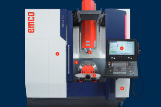 • Universal milling machine with solid rotary-tilting table dimensions 750 x 600 mm for maximum stability and precision